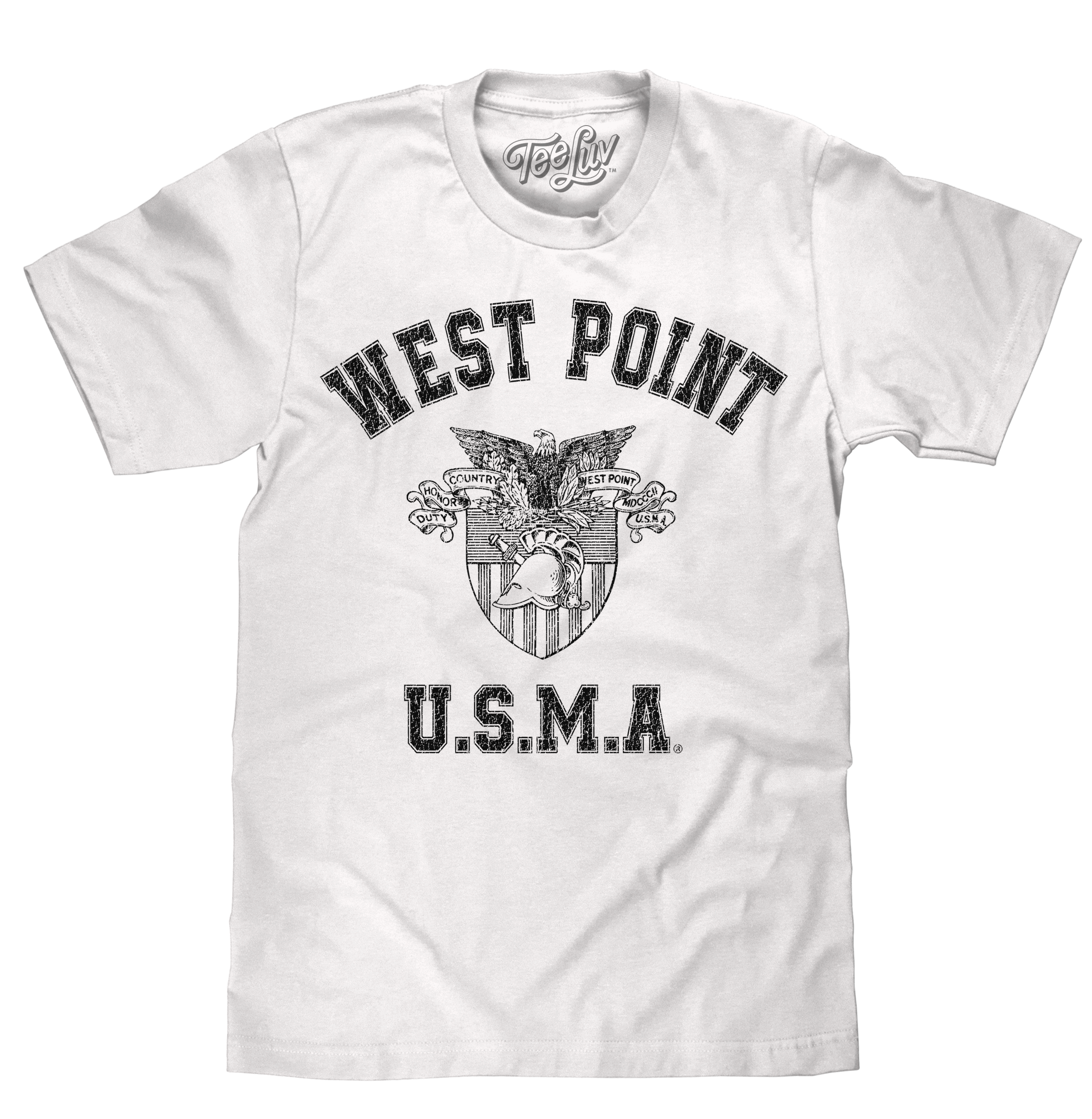 We decided to pay our respects to "The Point" and its rich history with a graphic tee featuring the instantly recognizable USMA coat of arms, and "West Point U.S.M.A." text. To complete the vintage look and feel on this West Point t-shirt - we've distressed the entire graphic, and printed it on the softest and highest quality, white cotton tee we could find.